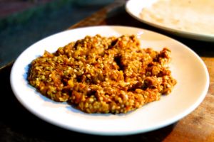 Tenhle tatarák pro vegetariány jsem si úplně zamilovala. Není teda syrový, jak tatarák známe. U tohoto pokrmu je právě naopak velmi důležitý otevřený oheň, na kterém lilek ogrilujeme doslova a do písmene až zčerná. Tím do něj natáhneme kouřovou chuť, bez které by tento pokrm byl jen chudý příbuzný. Tento recept z Punjabu, ze severní Indie rozhodně stojí za vyzkoušení.